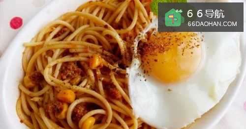 3打开锅盖,加入肉酱及番茄酱,翻炒均匀。