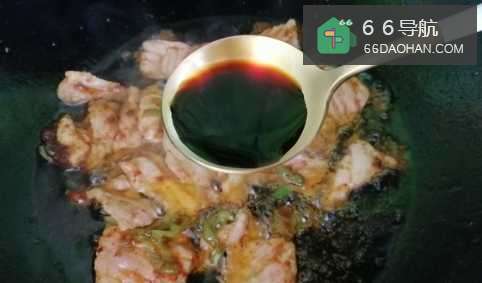 3接下来,起锅烧油放葱花,炒肉,加入少许生抽;