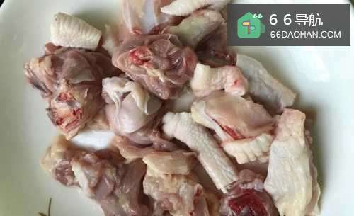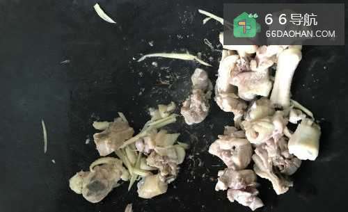 3鸡肉洗干净放在盘子里待用,姜切丝。