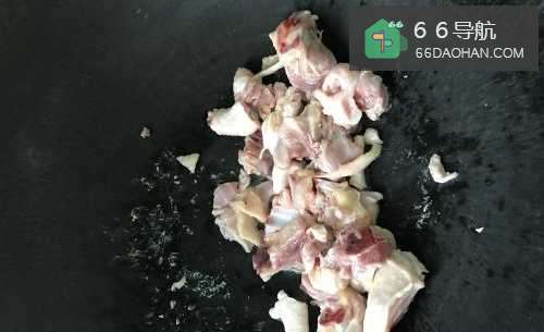 炒锅烧热,把鸡肉倒入,翻炒,把鸡肉多余的水分炒干。