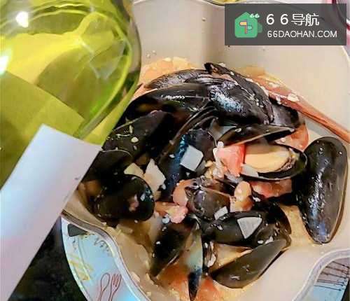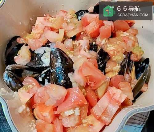 用白酒煮淡菜,味道很清新,入口有海鲜味兼白酒香,配上番茄煮,酸甜味又能突出淡菜的鲜味。