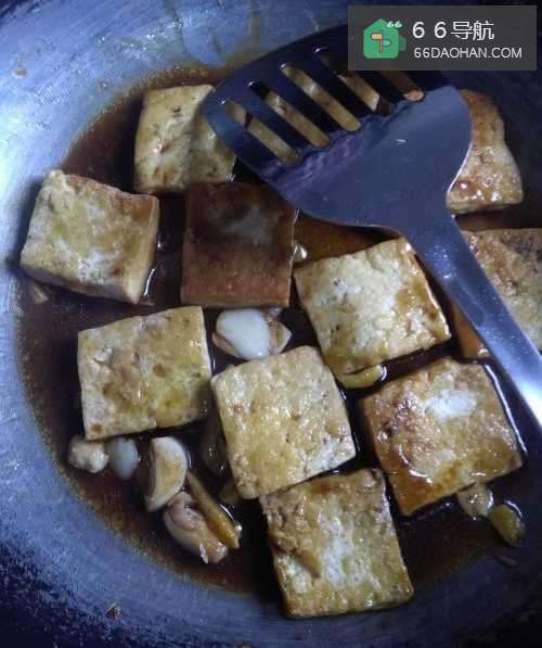 6把煎好的豆腐倒入锅中翻炒几下,倒入对好的汁炒匀,加上适量清水煮到收汁即可