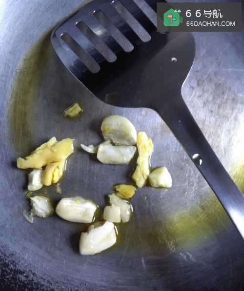 5锅中再加入少量油烧热,放入姜、爆香蒜