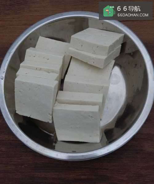 把豆腐清洗干净,切成5厘米左右稍厚一点的块