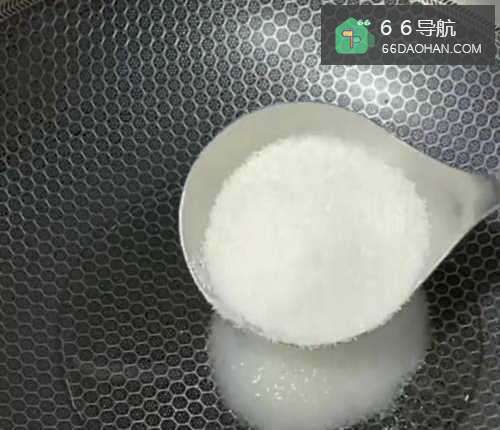 4再开火下1勺水、2勺白糖用中火煮糖融化。