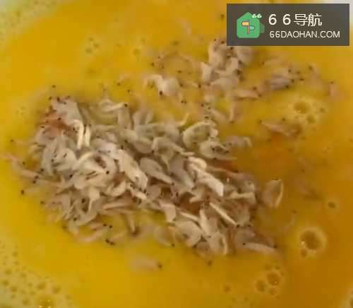 葱花、虾米融入鸡蛋中,鲜香扑鼻,风味独特。