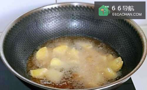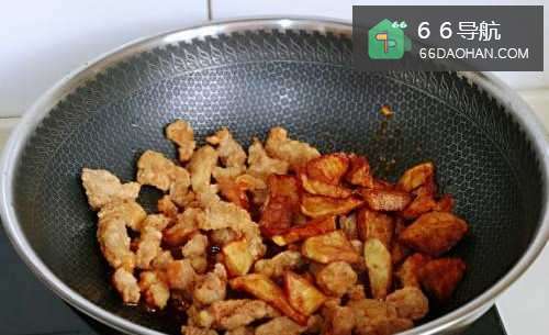 12倒入炸过的土豆与荔枝肉,小火翻炒使其入味