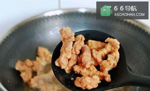 7锅中倒入花生油,油温7成热时下入荔枝肉。