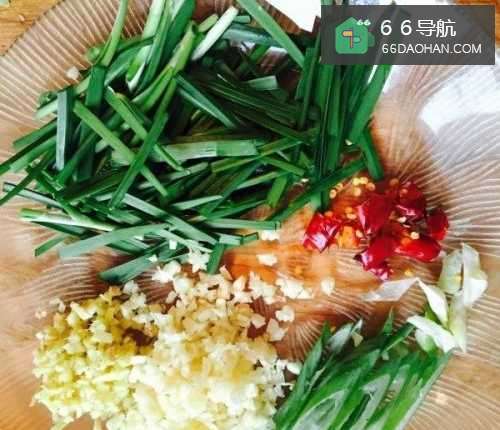 4葱姜蒜干辣椒韭菜,此处注意蒜一定要切成沫。