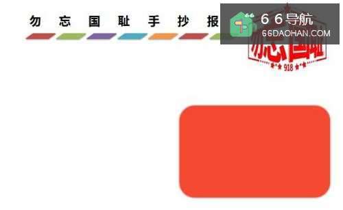首先,用彩笔在白纸上,画出含有立体感小长方形框架并涂上颜色,在白纸的顶部靠左写上字【勿忘国耻手抄报】的标题,如下图所示。