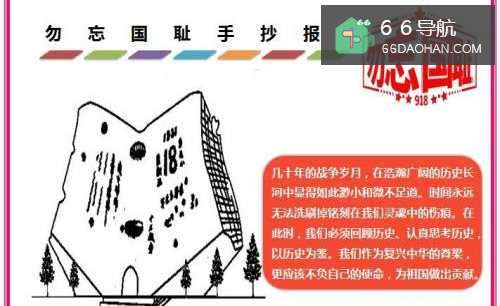 2在【勿忘国耻手抄报】标题的右侧处,画出画面丰富内容,如下图所示。
