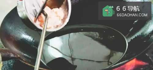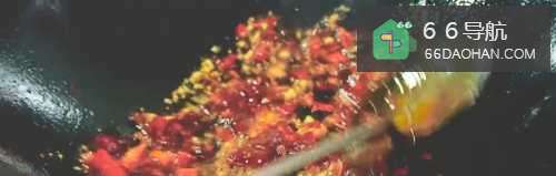 三.干辣椒爆香后倒入糍粑辣椒,蒜沫和特色辣酱制成宫保鸡丁的辣酱。