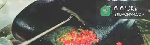 5干辣椒炒出香味,倒入20g糍粑辣椒,10g蒜沫和20g特色辣酱制成宫保鸡丁的