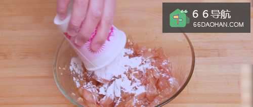 2鸡肉腌好后,再加入60g淀粉搅拌均匀。