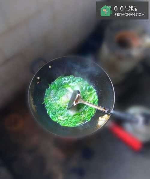 6在锅中的箩卜苗煮成翠绿色时,一道原味箩卜苗汤就完成了。
