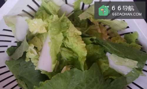 2然后淘洗数遍,直到将小白菜冲洗干净,再用手将小白菜卡成小段,控水。