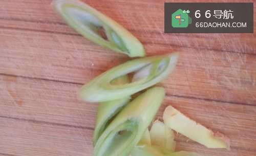 3将葱剥好冲洗干净,然后切成小斜段,将姜块冲洗干净后,切成姜片。