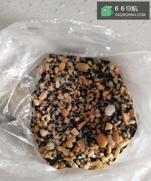 4第四步准备好混搭馅料适量的花生米、芝麻、白糖,然后盛一小勺放到糯米上面包起来,如下图所示。