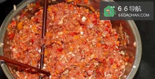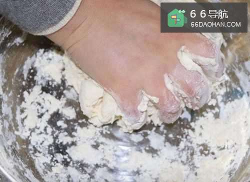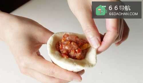 5将面团弄成小面团,再用擀面杖擀成薄皮,放入拌好的馅料;