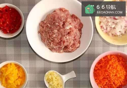 4再将肉馅和蔬菜混合,加入料酒、生抽、花椒粉、黑胡椒粉、盐搅拌均匀;