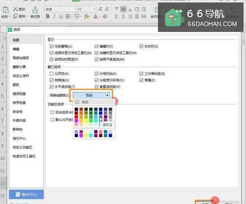 3在视图网络线颜色项目,点击【下拉框】选择颜色,点击【确定】即可。