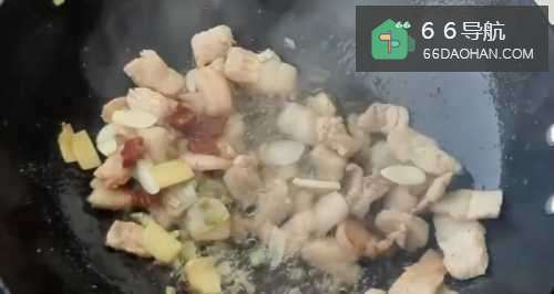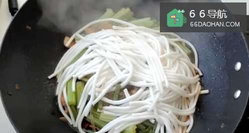 44.加油烧热,下入葱花,姜末,蒜片爆香,下入肉丝翻炒,将肉丝翻炒至颜色变白,下入芹菜翻炒12分钟