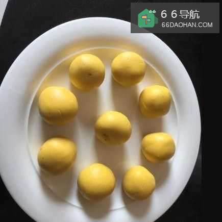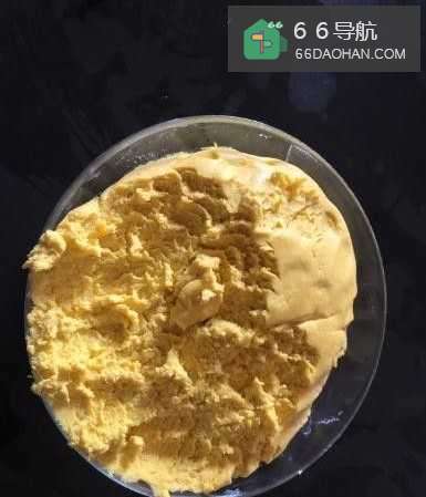 4将榨米粉和蒸熟的南瓜一起搅拌到可以粘在一起为止