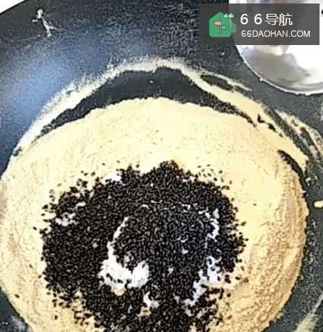3放入1勺白糖,适量的黑芝麻和花生碎;