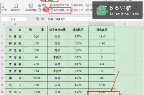 3点击菜单栏的【公式】—【追踪从属单元格】;