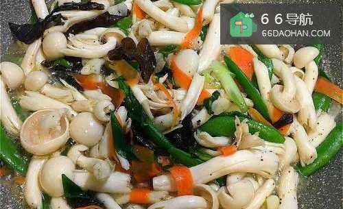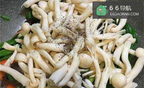 3放入白玉菇,加盐和适量的黑胡椒、鸡精。
