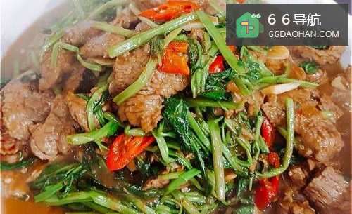用啤酒泡20分钟,倒掉啤酒再腌制过油可使牛肉软嫩好吃,加上空心菜拌炒,沙茶酱的调味,让这道菜更加美味可口。