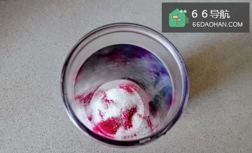 2火龙果切丁,放入榨汁杯放入白糖,倒入牛奶,液体量不能超过杯子最大刻度线榨汁,榨汁完成自动停止