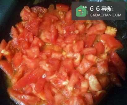 4将去皮的西红柿切成细丁,将锅预热并加入适量食用油,待油烧热后倒入西红柿丁,添加适量食盐促进出汁,进行翻炒,直至完全炒出汤汁。