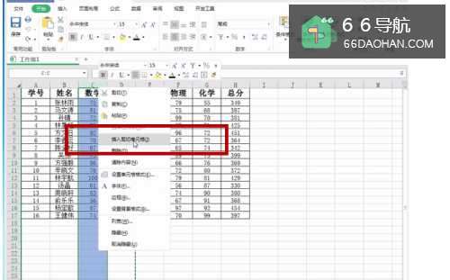 2将光标移动到C列并选中,右键选择【插入剪切单元格】
