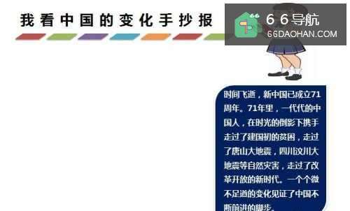 4在【我看中国的变化手抄报】标题的下方右侧处,在框内写上字,如下图所示。