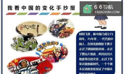 2在【我看中国的变化手抄报】标题的右侧处,画出画面丰富内容,如下图所示。