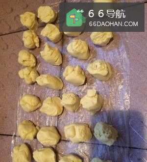 2把揉好的南瓜糯米粉团分成15~16克的小份,整齐码放