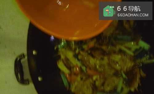 5把锅烧热,放油,然后放姜丝下去,再放芹菜下去,如下图所示。