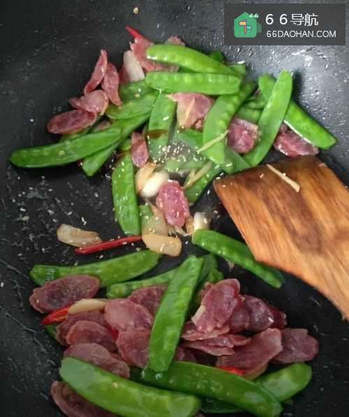 今天分享一道荷兰豆炒腊肠,清脆可口。