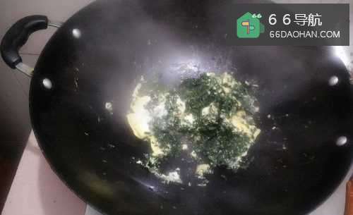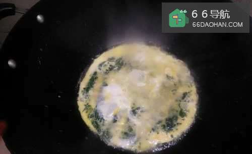 7一两分钟后,掀开锅盖,将鸡蛋均匀的洒在韭菜上,盖上锅盖。