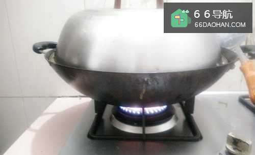 6盖上锅盖,将火调小一点。