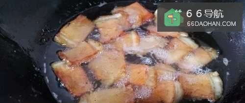 3 慢慢地煮,将肉片煮熟,经过这一步,肥肉中的脂肪被融掉,就不会那么腻口了。