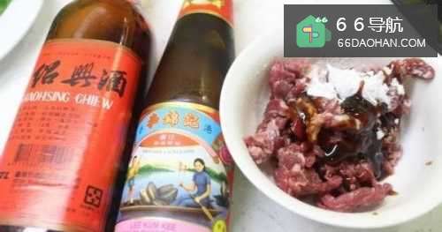 2牛肉部分我想带酒香,属于大人会喜欢的味道,加入绍兴酒和蚝油,太白粉抓腌5分钟,让牛肉嫩嫩滑滑的。