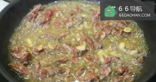 7加进3大匙水,让牛肉均匀受热带有汤汁呈现微微勾芡状。