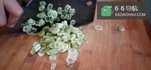 首先将芸豆和葱切碎,虾酱和鸡蛋混合搅匀。