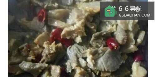 2姜红辣椒切碎备用,锅中加油烧热倒入生姜辣椒爆香,倒入肉片翻炒2分钟。