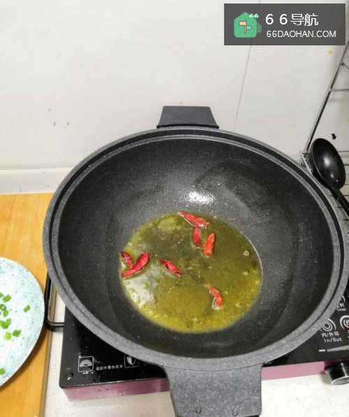 2锅中放入适量油,烧至7层热,放入干辣椒煸香。