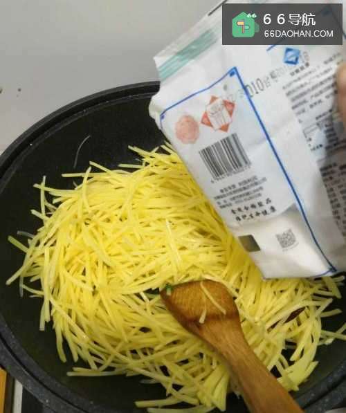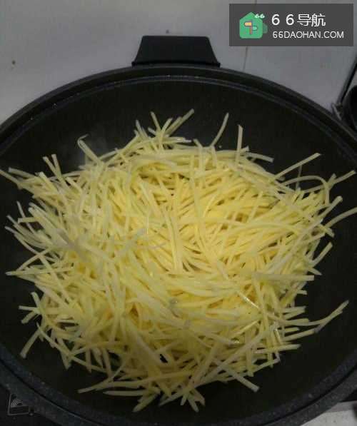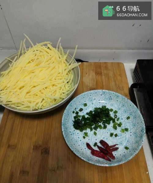 土豆擦丝淘洗去多余的淀粉, 葱叶切碎。