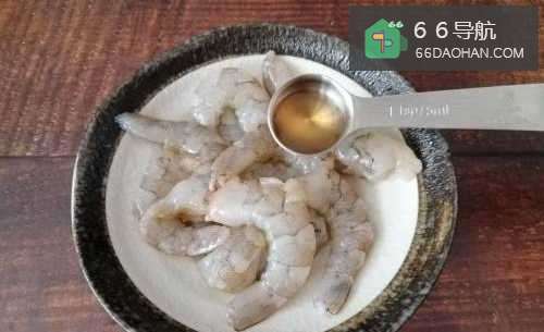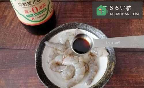 4把虾仁里倒入一勺料酒去腥