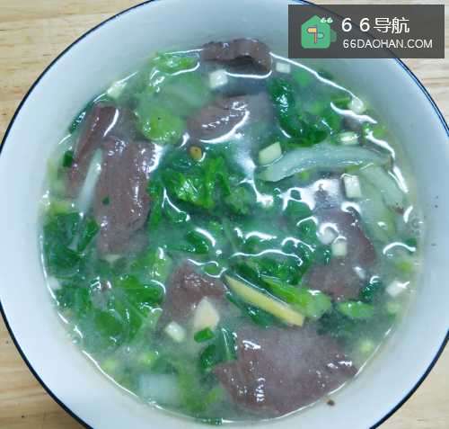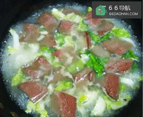 5鲜嫩可口的猪血白菜汤就完成啦,赶紧盛碗开吃把。